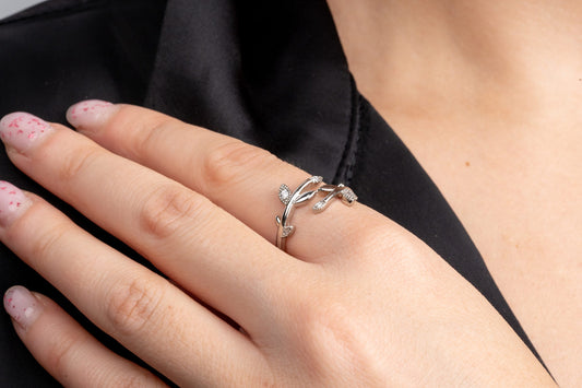 Изразете своята женственост с чара на пръстените с флорални мотиви. Нашата колекция разполага с деликатни листенца и сложни шарки, добавяйки нотка на вдъхновена от природата елегантност към вашия стил.