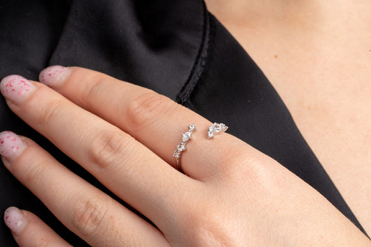 Регулируем сребрист пръстен “Crystal Cascade”